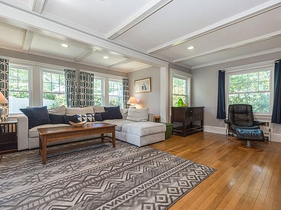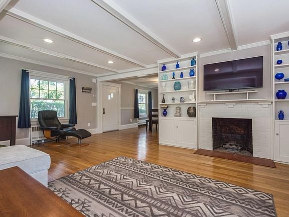 Welcome to your home for all seasons. Savor the sense of summertime and have family and friends over for a BBQ in the hedge-lined and spacious back yard. Enjoy the fall foliage and springtime green on your tree-lined street, which also boasts a brand new lighted intersection (used to have a big rotary here). Gather all your loved ones over the holidays in the spacious living room, with coffered ceilings and built-ins, that flows openly into the dining room, with hardwood floors throughout. Love preparing meals in your updated granite-and-stainless kitchen with ceramic tile floors. Use the partially finished basement as your game room, man cave, or play room, and laundry is easily accessed there too. Steal away upstairs to your large master bedroom, two additional bedrooms, and an updated bath. Even save a little money with the solar panels! Perfect for commuters or those itching to just get back to the outside world, this home is just minutes from the Oak Grove T, 93, and Boston.