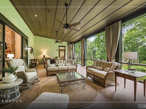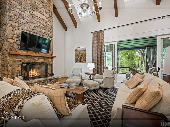 Embrace the perfect blend of mountain luxury and classic style with this expansive home on 1.15 acres in the renowned High Hampton community. This captivating property, with seasonal views of Chimney Top Mountain rockface, Hampton Lake, and the Tom Fazio-designed golf course, offers an unparalleled lifestyle close to resort amenities. A seamless blend of natural materials -- wood siding and a cedar roof, accentuated by stone and metal and set upon a meticulously landscaped yard with stacked stone border walls -- pave the way to a refined, thoughtfully designed custom residence. The heart of the home is the bright, airy great room with cathedral ceilings accented by wood beams that add warmth and character, and a wood-burning stone fireplace. The adjoining screened outdoor living space enhances leisure and entertaining options. The roomy, farmhouse-style chef's kitchen inspires culinary creation with stainless steel appliances, a double oven, and a sizeable walk-in pantry with prep space. Retreat to the luxurious primary suite with a spacious private bathroom featuring a double vanity, soaking tub, walk-in shower, and water closet, complemented by a generous dressing room closet and private patio access. Accommodating guests is simple as this home caters to every need with abundant spaces to spread out, including two additional main floor bedrooms with ensuite bathrooms and an upstairs open-concept apartment with bedroom, sitting, and living areas and three closets - a perfect guest suite or hobby room. An office with its own garden access adds functionality, bolstered by the built-in alarm and camera system with WiFi ensuring peace of mind and connectivity. Three-zone heating promises maximum comfort and ample storage throughout, including a workshop and fully encapsulated lower level, guarantees organization. Enjoy convenient access via a circular driveway and ample parking and storage for vehicles and outdoor gear in the substantial, two-and-one-half-car garage.