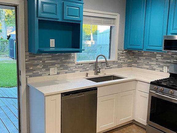 - Completely remodeled kitchen featuring premium quartz countertop and mosaic backsplash