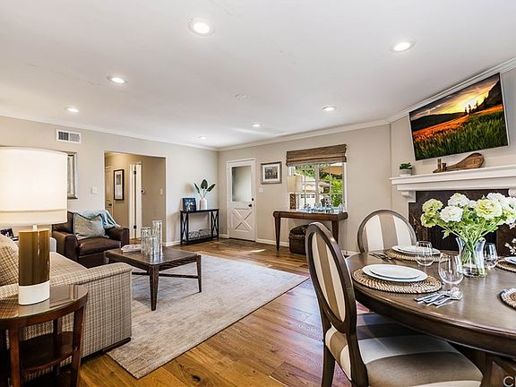 Welcome to the beautiful hills of Monrovia. This adorable home sits high on the hill of this quaint town with beautiful city and mountain views. Enjoy visiting with friends and neighbors on the front porch while enjoying the views. From the moment you open the front door, you will fall in love with this floor plan. It's large bedroom rooms, gracious kitchen, wide living spaces, and wood burning fireplace make it the perfect home. The master bedroom and bath has two large closets. The first has a chic mirrored barn door, and the second, is a roomy walk-in closet with dressing area. Among the many upgrades the home has to offer, are stunning wood floors, all new interior doors and handles, new windows, fresh paint, new lighting, and a fully finished 2 car garage that could be used as additional living space. The kitchen is fully stocked with high end professional grade Dacor and Miele appliances that would rival any chefs kitchen including large oven, microwave, 6 burner stove, extra large warming drawer, and top of the line dishwasher. The home has a whole house fan that can quickly cool down the home in a matter of a few minutes so that the air conditioning unit doesn't have to work so hard on those beautiful sunny days. The backyard has two options for entertaining and enjoying time with friends and family. The lower level is perfect for dining alfresco and the upper level landing is the perfect spot to relax and unwind with a beverage under the magnificent oak tree.