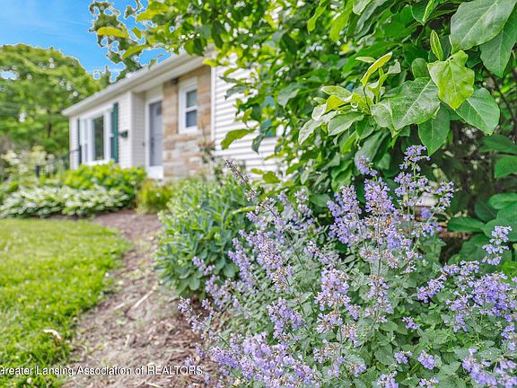 A 3-bedroom ranch with a 2-car garage in a convenient location is a rare find. Enter into a large living room/dining room combination with large newer windows and hardwood flooring, built in shelves. Updated, light bright eat in kitchen with newer stainless appliances, cabinets, lighting, flooring, and quartz counter tops was updated in 2021. Three bedrooms on the main floor boast hardwood flooring and one bedroom includes a gas fireplace. The bathroom has been updated with a large new step in shower. The original shower is operable and can be used for dog bathing or can be converted into a closet for additional storage. The basement is large and includes a workshop area & current laundry room. The furnace was updated in 2020 and water heater in 2017. The 2.5 car garage was built in 2020 and has a wide newer driveway for plenty of guest parking. The seller is a master gardener, and the landscaping is spectacular and partially fenced. Location is close to shopping, MSU, HWY & downtown.