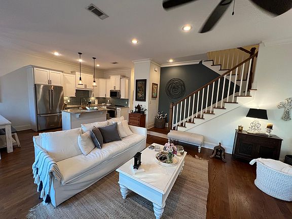 Create lasting beach memories in the beautiful gated community of Lakeside at Blue Mountain Beach. This stunning home is just one traffic light away from the beach, offering the perfect blend of convenience and luxury. With abundant natural light from windows and French doors throughout, this home features 4 bedrooms, 3.5 baths, hardwood floors, an open floor plan, and two covered porches ideal for relaxing and entertaining. It includes two master suites with custom-tiled showers. Enjoy neighborhood amenities such as a pool, playground, and access to state park trails, with the pristine sandy beaches and the Gulf of Mexico only 1/2 mile away. This is truly a beach home where your family can create memories to last a lifetime.