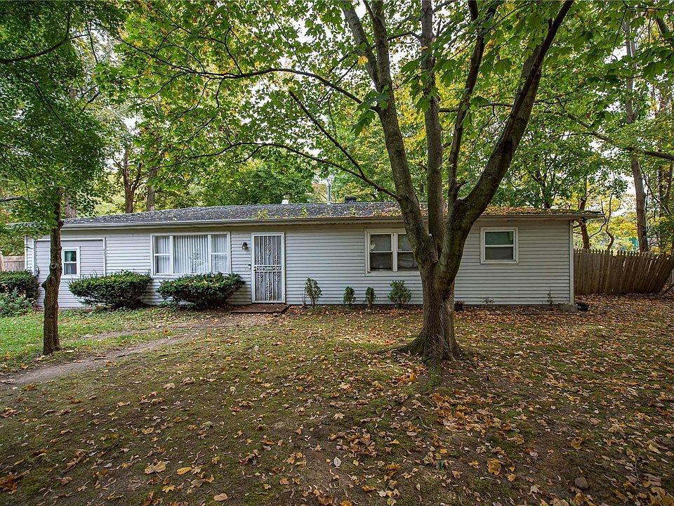Living room, dining room, kitchen, half bath, 4 bedrooms and a den which could be a 5th bedroom, full hall bath. Huge shy acre property. Wooded land behind the house. Tile flooring throughout. Deck off rear of property. Lots of privacy in the back yard. Close to nature trail in an area surrounded by farmland and undeveloped woods yet close to shopping center, golf course and entertainment. Multiple new developments being built in this area., Additional information: Appearance:good