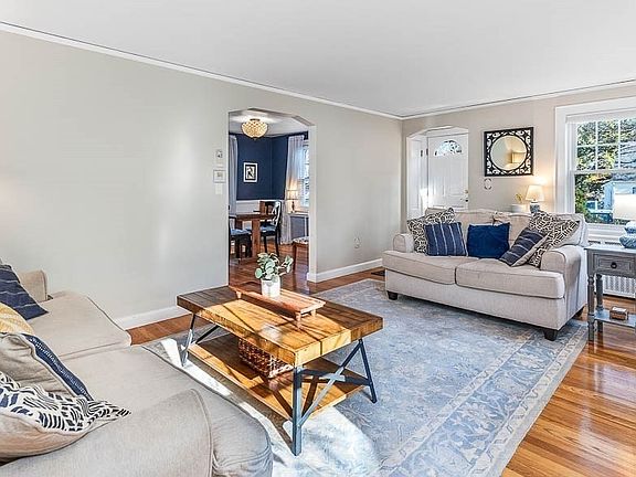 This Cape Cod style home offers beautiful natural light, charming detail and a great floor plan all in the fantastic Oakdale neighborhood! The first floor boasts a pretty entry way, large fire placed living room, dining room with period built in cabinet, and a fantastic remodeled eat in kitchen with stainless appliances, gas cooking, awesome pantry and granite counters! The slider off the kitchen to the beautiful patio and fenced yard makes entertaining a breeze! The first-floor bedroom with half bath works well just as is or as your home office or den! The second floor is home to the modern full bath and two generous bedrooms. The basement is nicely finished with fresh paint and flooring and offers a great laundry room with sink and plenty of storage space for your Costco and BJs hauls! The location can't be beat! Steps to the Endicott Commuter Rail, short walk to schools, easy drive to great shopping, dining and all major routes! Stop on by OH Thurs. 3-5pm and Sat./Sun. 11-1pm.