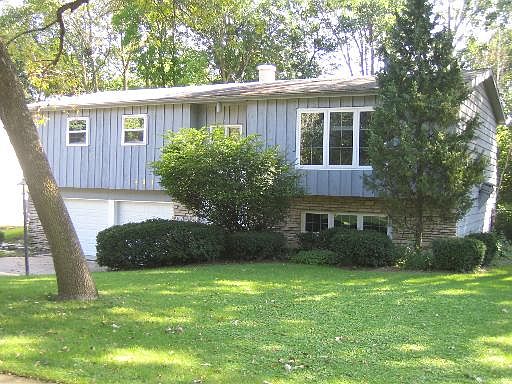 Vaulted entryway leads to bright,sunny family home great open floor plan-excellent flow for entertaining.Hardwood floors(LR/DR and under BR carpet),newer windows.Roomy eat-in kitchen with slider to 3 level deck and private fenced back yard.Lower level English bsmt includes FR with book shelves and,fourth bedroom/closet and 1/2 bath and laundry room.Recent improvements as of 9/1/07: New carpet on LL, new garage doors.
