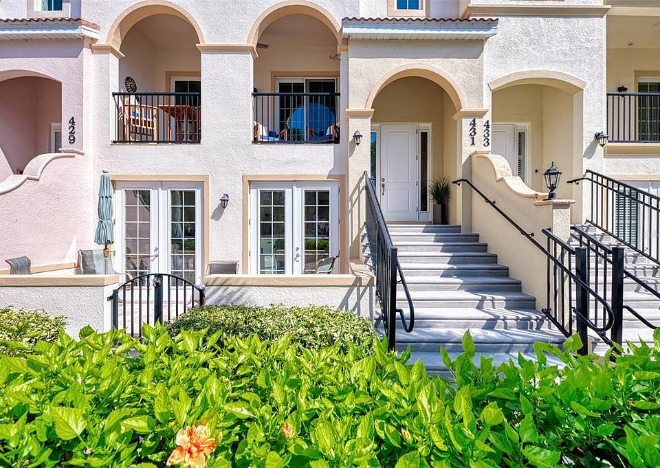 Island Life at its best Downtown Venice! LOCATION! LOCATION! LOCATION! This Exceptional Courtyard Style Condominium offers Easy Living on the Island of Venice! This 2 bedroom, 2.5 bathroom, with media room, den, ELEVATOR and two open Balconies is simply stunning! As you walk to the open foyer, your stair way can take you upstairs to main living of home(2nd floor) or you can take the ELEVATOR UP FROM (1st floor) located off near 2 car garage. The open floor plan offers Hardwood Engineer Wood Floors in all main living area, kitchen and primary bedroom. The Kitchen offers stainless steel appliances, quartz counter tops, beautiful glass backsplash, wine refrigerator, lots and lots of cabinet space with roll outs! Home is very light and bright, offers LED lighting thru-out! Owner loves view overlooking pool, park and many sunsets off Balconies! Primary Bedroom is very spacious with walk-in closet that offers built in shelving! Primary bathroom is large with walk-in title shower, large vanity granite counter top to include make up area and lots of storage too! Second bedroom is spacious with private balcony and is an ensuite with private bath too! Media room, Den and Laundry room is located perfectly in the Island Condo! Two Car Garage is rear of condo, is very spacious offers water softener and RO System! NO CDD, IMPACT WINDOWS AND SLIDERS, CONDO IS BUILT IN 2015, Walk to grocery store's, shopping, dinning on the avenue! Venice arts and Library is across the street! ONLY 26 courtyard condos in this community, and rarely available. Look for your call today!