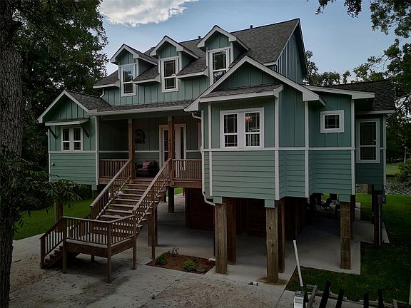 GET A WAY, RELAX, ENJOY. Make this beautiful custom home, your personal recharge zone. This original owner builder home, gives all the vibes of the beach, with all the pleasures of living on the lower Caney Creek waterway. Beautiful trees on a sloping lawn to the water edge, await you and your friends. Located in the beautiful Live Oak Bend community, the boat ride is scenic and relaxing to the Intercostal waterway. If you love fishing, want to go to the beach, or stay and enjoy this fabulous home, the choice is yours. With +/-2422 sqft, offering 4 beds, and 3.5 baths, there is room for everyone. Outdoor entertaining is a breeze on massive, beautiful decks, and the fully useable concrete space below the home. The size of the gathering depends on your guest list. The custom home offers luxurious finishes, custom kitchen, fabulous ensuites, and no carpet. Tall ceilings and expansive family area, all open to kitchen, dining and outdoor deck. Great pier with boat lift and recent bulkhead.