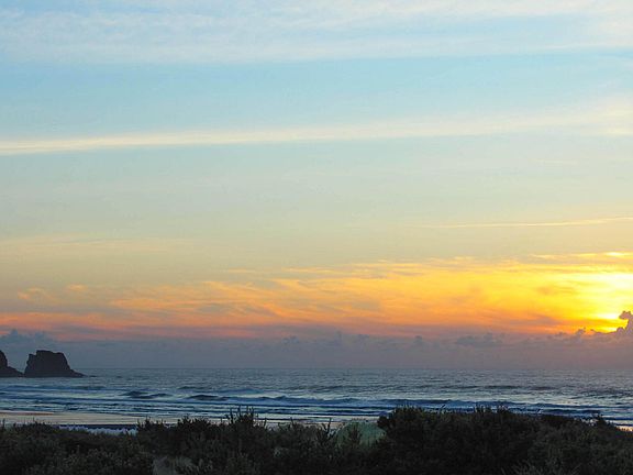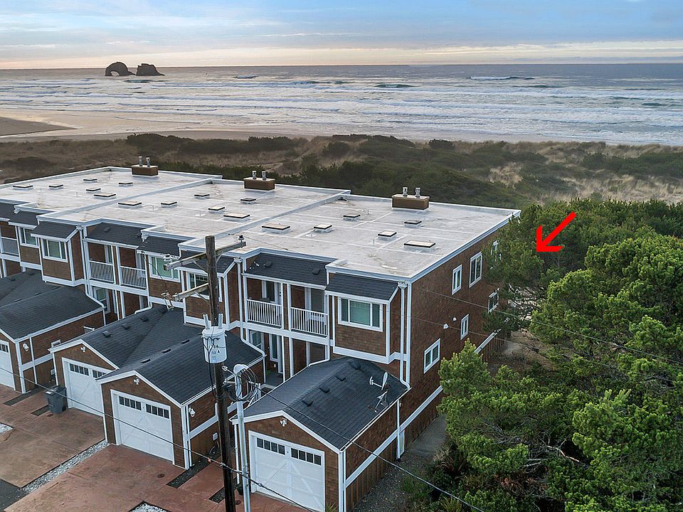 PANORAMIC OCEANFRONT VIEW from luxury townhome. End unit! Lavish travertine marble floors & granite counters, natural wood built-ins, jet tub, 3 decks w/glass rail, Smart Home system, fire sprinkler. View includes dramatic wave action around Twin Rocks. Newer cedar siding & solid ironwood decks. HOA fees $100/mo. 3 bdrm 2.5 baths. Oversized single garage provides lots of storage. Vacation rental OK. Popular sandy beach 7.5 miles long.