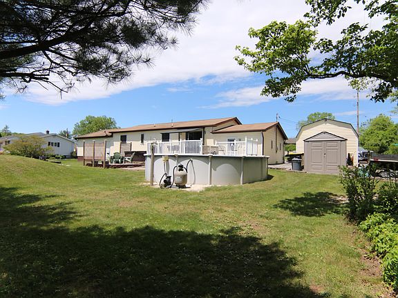 The backyard is your personal oasis with a covered, maintenance free Trex deck, overlooking an above ground pool and 3 person Master Spa hot tub plus an additional patio where you can spend your summer evenings.