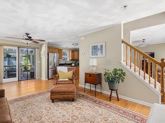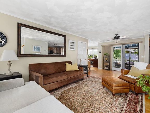Welcome to 431 Sampan Avenue, a classic center staircase Colonial nestled on a generous size lot in a tranquil island setting. This delightful three bedroom and 2-bathroom residence offers a perfect blend of tradition, comfort, and versatility. The original owner has taken great care in maintaining the home from the lovely gardens and landscaping to the upgrade in granite kitchen counter tops and stainless-steel appliances to the slider doors that lead to the most inviting deck with pergola accents. There is a dedicated dining room currently being used as a home office. Efficient kitchen design with a smaller kitchen island that could be expanded. A proper living room, an informal den area, and a three-piece bathroom comprise the first floor all with gleaming hardwoods. The attached one car garage is large enough to park a car! Currently, the garage has some built-in workbenches and shelving. Upstairs, the primary bedroom offers a serene sanctuary complete with a walk-in closet. The other two bedrooms are down the hall past the four-piece bathroom and linen closet. Each bedroom has ample closet space. The flooring on the second floor is wall-to-wall carpet. The unfinished basement has untapped potential with a bulkhead for easy indoor/outdoor access. There is a laundry drop zone, utility area, and more work benches. The open concept of this home has a smooth ebb and flow from room to room. Do not miss the opportunity to live in this desirable Jamestown Shores neighborhood.