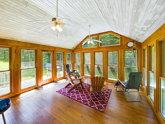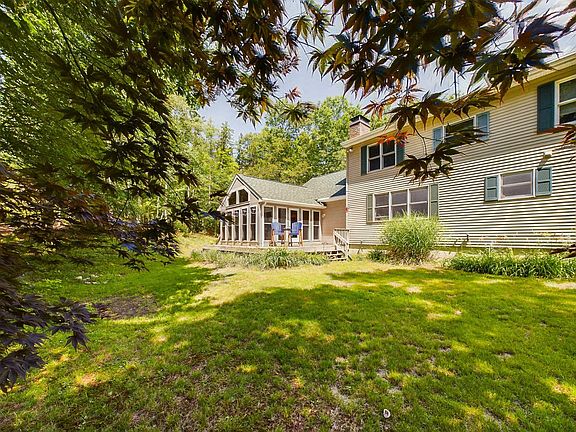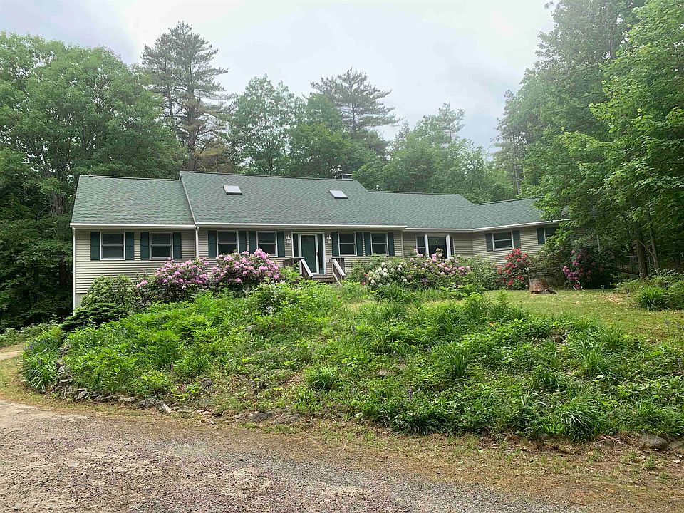This home, in the low-tax town of Moultonborough, is just off the beaten path but close to everything - restaurants, Lake Winnipesaukee, marinas, hardware stores, and more. The 13.39 acre wooded property is very private - a perfect backyard playground. It's surrounded by 40 acres of shared common land. Located on the side of the house is a large, fenced in kennel. Just inside the front door is a foyer and to the right is an office overlooking the front yard. Hardwood floors lead to the living room with a vaulted ceilings. Just off the main living area is a 3-season porch/sunroom which has plenty of natural sunlight. The dining room is open to the living area and is just off the kitchen - both of which have hardwood floors. The kitchen has a great center island with bar seating overlooking the back yard. Also on the first-floor is a laundry area with half bath. Towards the other end of the home you'll find a library with a wood-burning fireplace and beautiful views to the backyard. The first floor has three bedrooms, two with vaulted ceilings, and one with a large walk-in closet. The two bedrooms share a large full bathroom. Upstairs is an open bonus room off the master suite with double closets and a large private bathroom with a jacuzzi tub. On the lower level is a very large storage area as well as a large 2-car garage. This home has been well taken care of and is ready for you to call it home. Showings begin Tuesday, June 18, 2024.