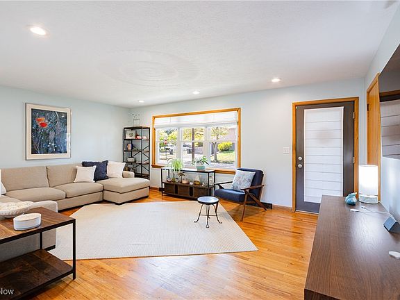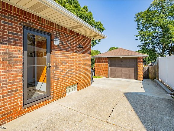 Welcome to 431 Stanley Rd., a charming all-brick ranch nestled in the heart of Ellet. This well-maintained home boasts 3 bedrooms and 2 full bathrooms and a 1 car detached garage, offering both comfort and style. The eat-in kitchen features elegant granite countertops and modern stainless steel appliances. Hardwood flooring extends throughout most of the first floor, including the spacious living room with newly added recessed lighting (2023), vinyl windows, and hardwood floors. The first-floor bathroom has been thoughtfully remodeled with light-colored marble flooring, a new cast iron tub with tile surround, Kraftmaid vanity with granite top, glass tile backsplash and updated lighting. Additionally, all windows and exterior doors were replaced in 2009. A Smart Nest thermostat and hot water tank were added in 2023. The home offers flexibility with four pocket doors, enhancing the floor plan to suit your needs. The finished basement significantly enhances your living space, featuring a spacious 40x13 main recreation room and an additional 11x14 room ideal for crafts, an office, or a 4th bedroom. These versatile areas showcase engineered hardwood flooring, stylish lighting, and a modern color palette. A convenient 11x8 full bath with ceramic tile flooring, shower, and a pedestal sink adds to the functionality. The washer and dryer are also included with the property. Step outside to your private backyard, surrounded by a cedar fence and featuring a new concrete patio added in 2021, perfect for outdoor relaxation and entertaining. This property is 10.5 miles from the Canton Akron Airport, 5.4 miles from downtown Akron and 41 miles from downtown Cleveland. Don’t miss the opportunity to make this lovely home yours!