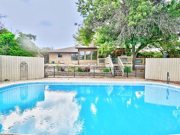 Located in the desirable Forest West neighborhood, imagine yourself in this beautifully remodeled open floor plan with a view from the front door all the way through to the back deck. This classic ranch with a stone exterior just speaks Hill Country. Enjoy the Large great room with a beautiful stone fireplace & vaulted ceilings open to the remodeled kitchen w/ SS appliances, wine fridge & large pantry for family gatherings. Imagine being out on the spacious back deck that overlooks the Pool in this beautiful terraced landscaped backyard, lots of xeriscaping so very little mowing. The backyard is fully fenced plus a separate dog kennel & Pool equipment shed. Trees, Trees, Trees, great shade in the front with huge cypress trees & also huge trees that shade the back deck. Enjoy the very spacious Heated/AC Sunroom with many windows that offer a great view of the pool. The main bath features a jetted tub. The master bath offers a large tiled double shower with his/her sinks & his/her closets. The large Master bedroom features large windows for views of the backyard.