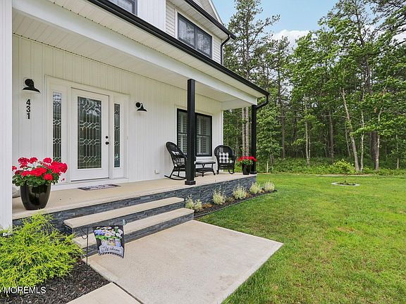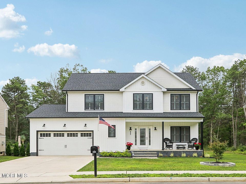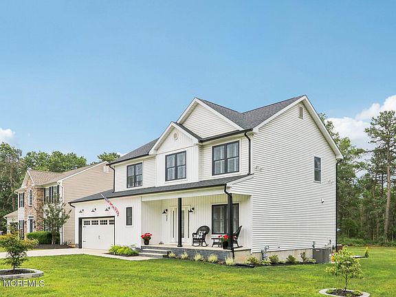 Built in 2022, this stunning 4-bedroom, 2.5-bath modern home is perfectly positioned on one of Bayville's most desirable no-outlet streets. Thoughtfully designed for today's lifestyle, it showcases exceptional craftsmanship, elegant finishes, and a seamless blend of comfort and style throughout. The open-concept main level welcomes you with a spacious foyer featuring custom molding and barn doors that lead to a versatile flex room—perfect for a home office, playroom, or lounge. The designer kitchen impresses with a large dining area, center island, stone countertops, custom tile backsplash, stainless steel appliances, and generous pantry storage. The inviting living room is accented with shiplap detailing, custom trim, and a sleek electric fireplace, while the mudroom with board-and fireplace- while the mudroom with board a batten accents and a stylish half bath adds everyday functionality. Upstairs, the luxurious primary suite offers a soaring ceiling, large walk-in closet, and spa-inspired ensuite bath with a walk-in shower, dual vanities, and freestanding soaking tub. Three additional bedrooms share a beautifully appointed full bath with dual sinks. A convenient second-floor laundry with an adjacent linen closet adds modern-day practicality. Additional highlights include paddle fans in all bedrooms, living room, and flex room; engineered hardwood flooring throughout (tile in bathrooms); shutters on all windows and a vertical shade on the sliding glass door; in-ground sprinklers; and attic access with pull-down stairs. The unfinished basement provides excellent storage or the opportunity to customize your dream space. Glass sliding doors open to a beautiful 18' x 33' paver patio and oversized backyardideal for entertaining, outdoor dining, or simply relaxing. The home also features two garage door openers for added convenience. Modern, stylish, and move-in readythis turnkey home offers the best of Bayville living in an unbeatable location. Don't waitthis one won't last!