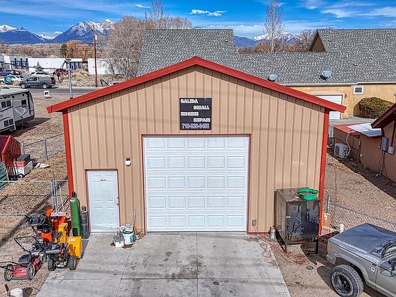 Massive RV Garage/Workshop + House in Salida! The four-year old, preformed aluminum shop on concrete is an impressive 960 sq.ft. (40’ x 24’) insulated, heated and has four 220 outlets. There's also air compressor piping throughout, a 12 x10 door, wench, bathroom, lighting, shelving, work benches and a porta-a-cooler AC unit. The home has an open floorplan and has been improved recently with the addition of new matching kitchen appliances, many new windows, newer washer/dryer, new hot water heater and newer wood burning stove. The crystals among the stonework on the fireplace are a subtle reminder of those earlier Salida pioneers. Salida is home to world class rafting on the Arkansas River, Gold Medal fishing in the Arkansas waters, endless miles of hiking and mountain biking trails, natural snow at the growing Monarch Ski Area and Colorado's first official Creative Arts District. Gather your dreams and plans and set an appointment to put them in motion on this site. Contact the listing agent for additional information and to schedule a showing.
