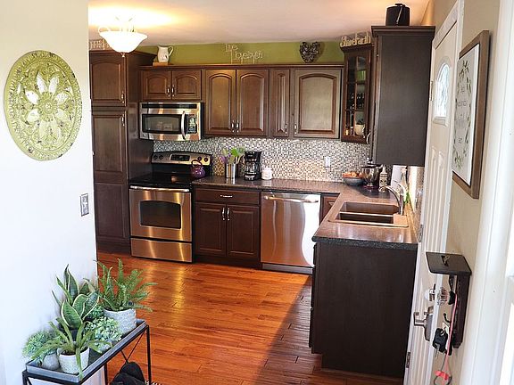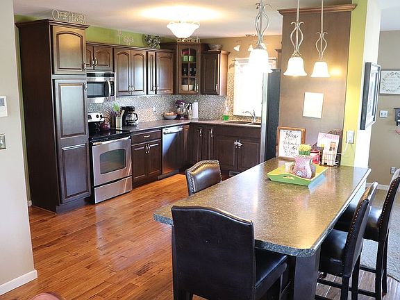 Oiled drivewayTons of beautiful cabinetsNewer open concept kitchenDining areaNew vinyl flooringHand-scraped hardwood flooring