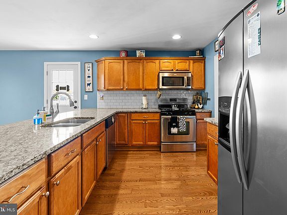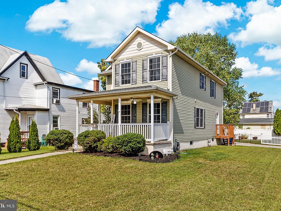 Welcome to 431 Washington Street! This charming corner property is filled with upgrades and thoughtful details throughout. Step onto the large covered porch and into a bright, inviting home featuring hardwood floors that flow through the dining room, family room, and living room. The spacious eat-in kitchen is a true centerpiece, boasting granite countertops, a tile backsplash, and stainless steel appliances. Upstairs, the main bedroom impresses with vaulted ceilings, a large walk-in closet, and an upgraded full bathroom. Two additional spacious bedrooms share a second full bath, and the convenience of a second-floor laundry room adds modern ease. The full unfinished basement provides plenty of storage or potential for future living space. Outdoors, enjoy multiple patios with a concrete slab and EP Henry pavers extending across the yard—perfect for entertaining and relaxation. This home is move-in ready and truly a must-see!
