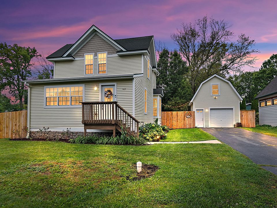 This stunning farmhouse seamlessly blends timeless charm with modern luxury. Completely rebuilt in 2017, this home offers all the high-end upgrades you could want-from the beautifully updated kitchen and bathrooms to the elegant fixtures, custom blinds, and designer drapes throughout. The bright open kitchen includes SS appliances, updated cabinets, and spacious pantry. The newly added mudroom is the perfect spot to drop your belongings before entering this cozy home. A finished English basement adds incredible living space, featuring a full bath, and a spacious bedroom. The current owner's have added to the property by securing an additional 1.1 acres-now partially fenced, with top-of-the-line materials, including durable metal posts-perfect for pets, privacy, or outdoor recreation. A paver brick finishes off this amazing backyard. Located just feet away from picturesque downtown Woodstock, this home offers the best of both worlds- peaceful country living with the convenience of shops, restaurants, and community events right at your doorstep. A truly move-in-ready gem with character, space, and modern comfort in an unbeatable location!