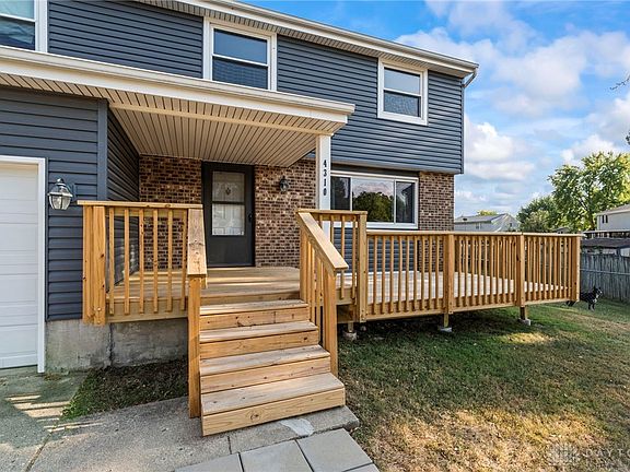 Beautifully situated at the end of a quiet cul-de-sac in Clayton, this spacious 4-bedroom, 2.5-bath home sits on nearly half an acre and offers a perfect blend of style and function. The main level opens to a spacious living room, perfect for gatherings, along with a separate family room featuring a cozy wood-burning fireplace that has been fully serviced and updated for peace of mind. The kitchen includes brand-new quartz countertops (2025), a new dishwasher (2025), and a full set of modern appliances. Upstairs, the master suite offers a walk-in closet, private full bath, and brand-new granite counters, while the three additional bedrooms share another updated full bath with granite. A convenient half bath is also located on the main level. The home also includes an unfinished basement with a small crawlspace area—a blank canvas with extra storage options. Outdoors, enjoy the new front porch (2025), a huge rear deck, and an oversized backyard—rare to find in the city. Recent improvements include a new roof (2017), heat pump with air handler and AC unit (2014), double-pane vinyl windows (2013), and updated water heater element (2013). Located in Northmont School District. Home warranty included for buyer's peace of mind. Schedule your showing today!