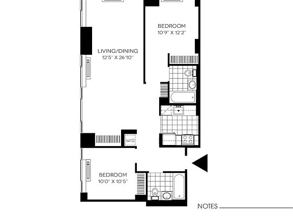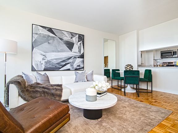 This spacious 2-bedroom home features a large living space, Manhattan city views, and in-home laundry.