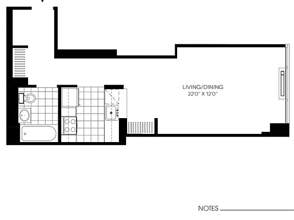 This spacious sunlit alcove studio home features a foyer, ample closet space, an island kitchen, and Long Island City views.