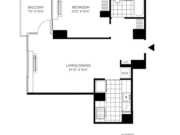 Sunny one-bedroom home with Manhattan views, in-home laundry and a balcony.