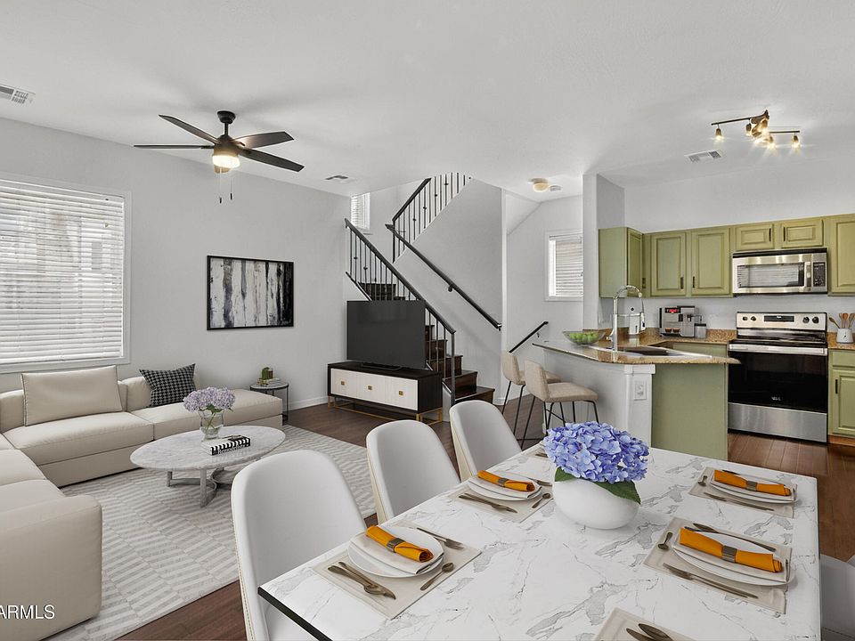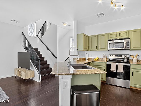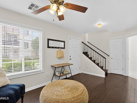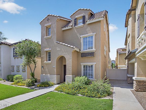 Welcome to this Gilbert Gem!This 3 bedroom, plus a den, 2.5 bathroom home offers a versatile floor plan in a prime location near shopping, dining, and entertainment. The entry level features a spacious den or office, a convenient half bath, and access to the 2 car garage. On the main level, you'll find the kitchen with granite countertops, a comfortable living room, two well sized bedrooms, and a full secondary bath. The top floor is dedicated to the primary suite, complete with a large walk-in closet and an additional office nook, ideal for remote work or relaxation. The home includes real wood flooring throughout and fresh interior paint completed in 2023. Community offers multiple pools, shaded playgrounds, and several green parks that provide plenty of space for outdoor activities. The location is highly convenient, with Target, World Market, Starbucks, and a brand-new In-N-Out Burger just steps away. Only two miles from Epicenter, you'll enjoy access to popular restaurants such as Matt's Big Breakfast, Belly Kitchen & Bar, and Buck & Rider. Fry's grocery store is within three miles, and quick access to Loop 202 makes commuting throughout the Valley simple.
