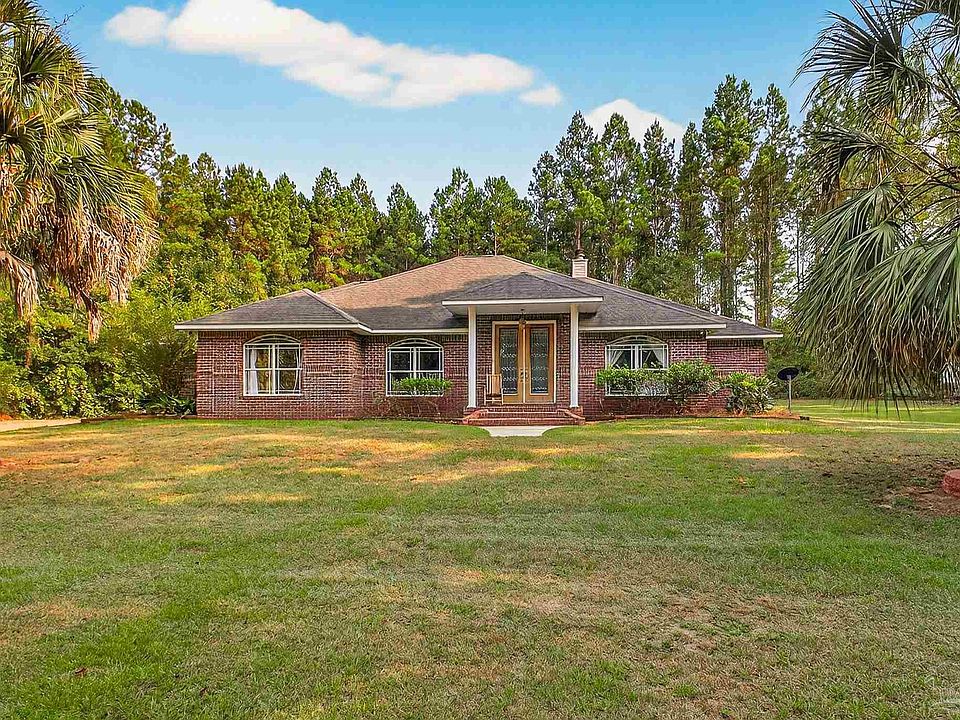 Nestled on 5.5 beautiful acres in peaceful Molino, this spacious 4-bedroom, 2-bathroom home offers the perfect blend of comfort, style, and outdoor living. Step through the inviting foyer that opens into a cozy living room featuring a charming fireplace, perfect for relaxing evenings. Just off the foyer, the formal dining room provides an elegant space for hosting family gatherings or holiday dinners. The kitchen is complete with sleek granite countertops, stainless steel appliances, a breakfast bar, and two walk-in pantries, offering plenty of space for storage and meal prep. On one side of the home, you’ll find two generously sized bedrooms, a full bath, and a laundry room equipped with custom cabinetry. On the opposite side, the third bedroom and spacious master suite await. The master boasts a tray ceiling, three walk-in closets, and an en-suite bathroom with double vanities, and a water closet. Step outside to your private backyard retreat featuring a covered deck with ceiling fans and a bar, a sparkling inground pool, ideal for entertaining all year round. Outside you will also find an impressive 24x48 workshop that is designed for serious projects, currently set up for both an automotive and woodworking shop. The upstairs loft includes a built-in floor outlet, while the main level offers a 220-outlet ready for a welder or RV. Custom work tables, pegboard tool holders, and LED lighting beneath the loft create a bright, organized, and highly functional workspace. To the left of the driveway, you'll find a cleared area—perfect for gardening, recreation, or even setting up a hunting spot. This property offers the privacy and space of country living with modern comforts and upgrades throughout. Don’t miss your chance to own this one-of-a-kind home. Schedule your private showing today! New Roof to be put on prior to closing with acceptable offer.