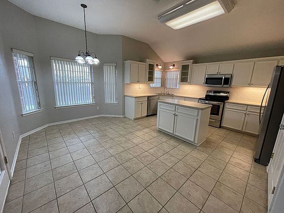 Brick fireplaceFenced yardStainless steel appliancesEat-in kitchenCovered back patioJet tubVaulted ceilings