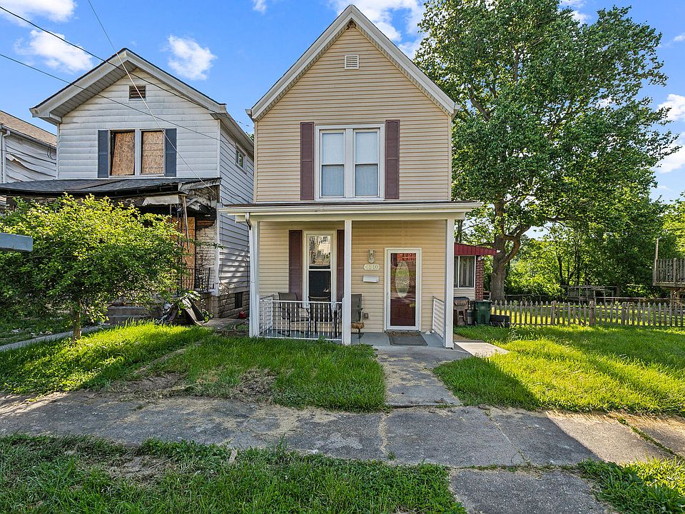 Welcome to 4310 Michigan Ave—a two-story home with character and potential, set on a spacious double lot. With 2 bedrooms, 1 full bath, and over 1,300 sq ft, it's ready for your personal touch. A front porch and sidewalk-lined street create a welcoming entry, while tall windows with shutters add charm. Inside, you'll find high ceilings and a light-filled layout. The kitchen includes wood cabinetry, white appliances, and tile flooring, opening to a roomy dining area and bright living room. At the back, a sunroom with wood beam ceilings overlooks the deep rear yard. Upstairs, two large bedrooms with white walls offer a blank canvas. A full bath with tiled walls and a tub/shower combo, plus a laundry room, add function. The double lot offers plenty of yard space for outdoor use or future plans. Just minutes from local parks and dining, enjoy Middleton-Mills Park and spots like The Roost Latonia and Bard's Burgers—all a short drive away. This home is full of possibility for someone ready to make it their own. Schedule your showing today!
