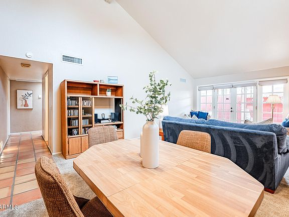 The living room has vaulted ceilings, lots of natural light and a beautiful brick fireplace, perfect for cozy gatherings or relaxing evenings at home. French doors lead out to good size covered patio. Home office could be used as additional 3rd bedroom. New Roof & AC in 2022! Nice community pool and small grassy area. Located next to Los Olivos Park which has a great playground and lots of open space to enjoy. Nestled in the heart of Phoenix, excellent location near trendy eateries, upscale shopping destinations, & cultural hotspots. Easy access to major highways & transportation hubs. Come see this one today!