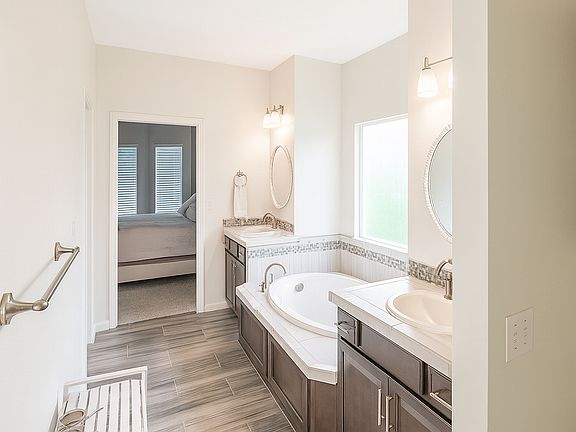 Luxurious Main Suite: The primary bedroom suite is located on the main floor, providing a tranquil haven. It includes a walk-in closet and an en-suite spa-like bathroom with a soaker tub and a separate walk-in shower . Dual vanities offer plenty of space for two , and modern fixtures lend a pampered, hotel-quality feel. Two additional bedrooms on the main level are well-sized and share a full bath, making the layout ideal for families.