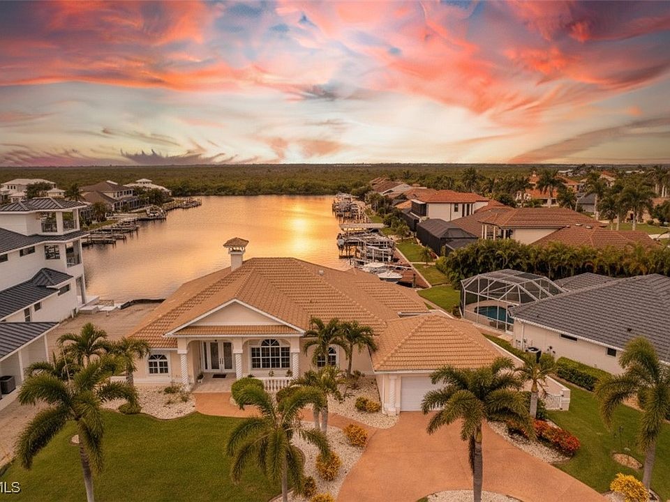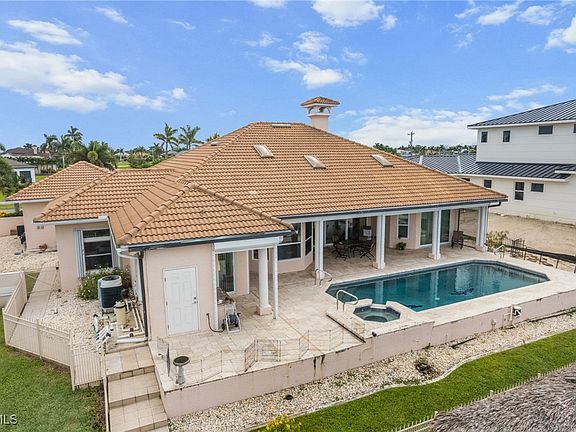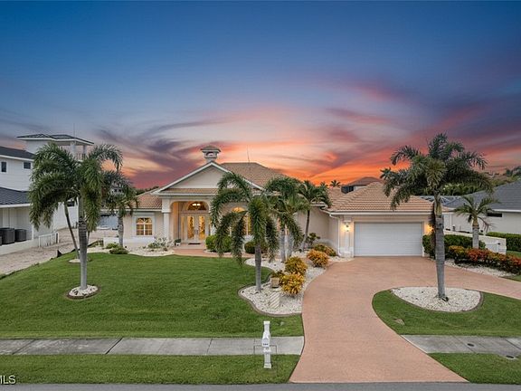 NEVER FLOODED ON THE INSIDE! LOW FLOOD INSURANCE COSTS! This Sailboat Gulf-access pool home features 4 bedrooms, 3 bathrooms, and over 2,600 square feet of living space in one of Cape Coral’s most desirable neighborhoods off Sands Blvd. Located at the end of a short canal, the home looks out across the spreader canal and preserve with WESTERN EXPOSURE for gorgeous sunset views. Sands Park is right across the street and includes a playground, dog park, putting green, basketball, tennis courts, and pickleball spread over 16.5 acres. Inside, double French doors open to the main living area with wide water views and a fireplace topped by a custom-carved mantle. The open kitchen and living space make it easy to host gatherings. The primary suite features a jetted tub, separate shower, and a walk-in closet with custom shelving. Two bedrooms share a Jack-and-Jill bathroom, while the fourth bedroom can serve as a guest room or office, complete with its own bath that also functions as the pool bath. Step outside to a spacious patio, resurfaced heated pool, and spa with a waterfall feature, all overlooking the preserve. A boat dock and tiki hut were added in 2017, and the boat lift was outfitted with new motors in 2025, making this property ready for boating and outdoor living. Major updates include a TILE ROOF (2017), IMPACT WINDOWS AND DOORS (2017), POOL RESURFACING (2017), NEW POOL EQUIPMENT (2025), WATER HEATER (2021), and a NEW IRRIGATION SYSTEM (2025). The garage is air-conditioned and includes a pull-down screen as-well. Sailboat access, extensive updates, and a premier location make this home a Cape Coral gem. Call today for your private showing!