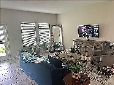 The home’s interior impresses with a functional and stylish layout, featuring elegant ceramic tile flooring throughout the main living areas and cozy carpeting in the bedrooms. The contemporary kitchen is a chef’s delight, equipped with sleek stainless-steel appliances and ample counter space, making meal preparation a breeze. With four generous bedrooms and three full bathrooms, there is plenty of room for family and guests.