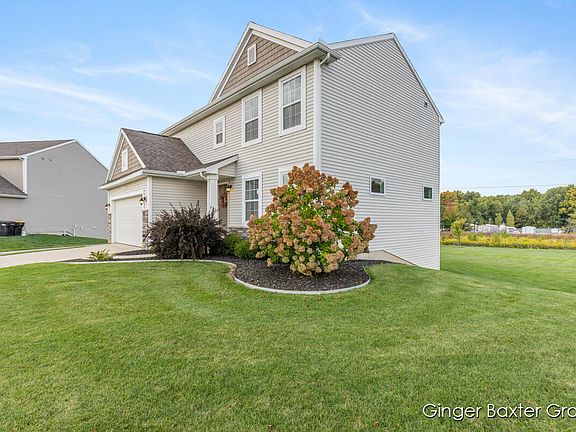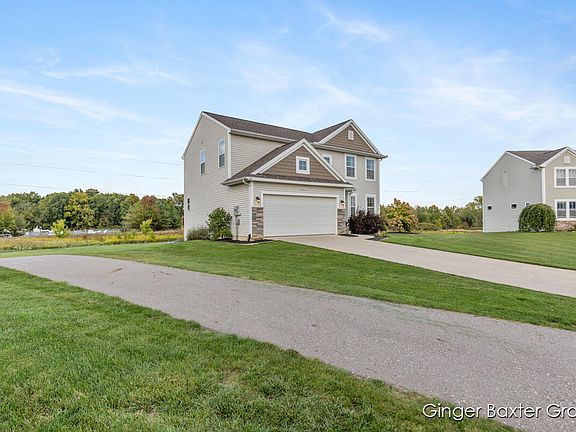Fantastic two-story home in Spring Grove Farms with no buildable land behind for added privacy! Located in award-winning Hudsonville Schools, this 4-bed, 2.5-bath home is beautifully maintained and updated throughout. The main floor offers an open layout with a kitchen featuring newly painted olive-green cabinetry, center island, new vinyl plank flooring, and stainless appliances. Enjoy a spacious living room, dining area, half bath with wainscoting, mudroom with bench and hooks, and main-floor laundry. Upstairs includes 4 bedrooms and 2 full baths, including a primary suite with en suite bath and walk-in closet with window. The finished lower level adds a custom Built ins book shelves with large screen TV and bar with quartz countertop, rec space, and storage. Extras: UG sprinkling, 24'×16' deck, insulated garage, fresh paint, and large yard. Showings begin Saturday Nov. 15th at 12pm. Offers due Nov 24th at 10am. Don't miss this Spring Grove gem!
