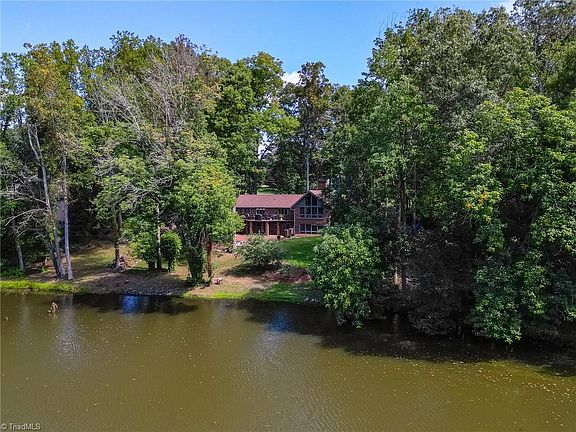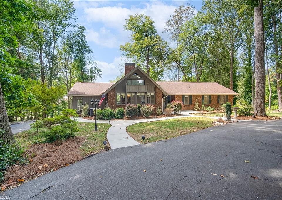 This is where rustic beauty meets quiet, modern living — a place where you can breathe, unwind, and feel completely at home. This home has water views in the back yard where you can fish or relax. Boasting 1.32 acres, you'll find plenty of space to unwind in this quiet setting. Enjoy floor to ceiling windows facing the water. Inside, you'll enjoy a large, spacious kitchen with lots of natural light, a fireplace on the main level as well as one in the basement. The primary bedroom walks out to a back-facing deck with water views. The basement has a large recreational room, a sitting room for reading, a full bathroom and a two-car basement garage with storage/working areas. Closely situated to I-40, shopping and Tanglewood Park.