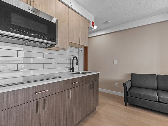 Welcome home to the Nestera Penthouse Bachelor Suite, located in a brand-new building just steps away from everything you need. This fully furnished top-floor suite offers modern, low-maintenance living with stunning views and a thoughtfully designed layout. Inside, you'll find a built-in Murphy bed and wardrobe, an efficient induction cooktop, and a combi-bake microwave for easy meal prep. The bathroom features a stylish sliding barn door, a spacious walk-in shower, a personal wardrobe, and a high-end mirror with built-in lighting and anti-fog technology. All utilities are includedpower, gas, water, Wi-Fi, and cableso you can enjoy hassle-free living with no surprise bills. The building also features plenty of parking, shared laundry facilities, a fully equipped fitness center, and extra storage available at a low monthly cost. Seniors aged 60+ can take advantage of a $50 monthly rent discount, and students are welcome with flexible short-term lease options available. This is your chance to enjoy comfort, convenience, and style in a brand-new penthouse suitecontact us today to schedule a viewing!