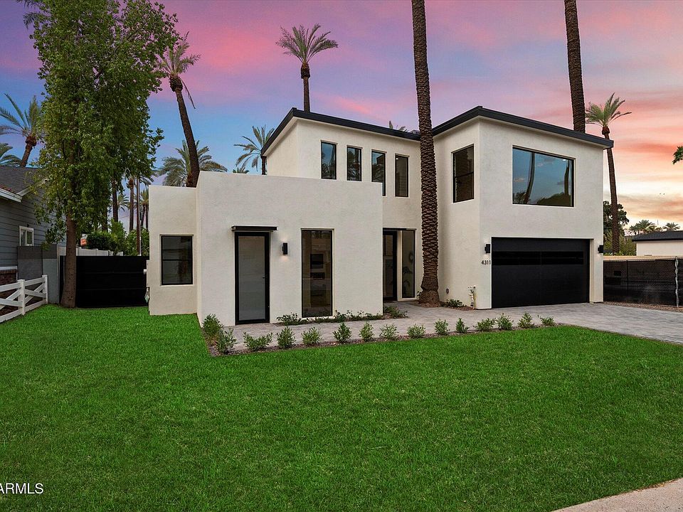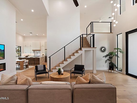 Brand new modern home completed in the Fall 2025! This 4-bedroom, 4.5-bath home includes a detached casita that's perfect as a pool house, guest suite, or private office. Step into a grand entrance with a pivot glass door, soaring 20-ft ceilings, and walls of windows that fill the space with natural light. The chef's kitchen features a double waterfall island, walk-in pantry with extra fridge and microwave, and a stylish workstation sink. Enjoy the sparkling Pebble Tec pool, spacious loft, and thoughtfully designed laundry/mudroom. Built with quality finishes including spray foam insulation, a 40-year metal roof, soft water system, and more—this home has it all!