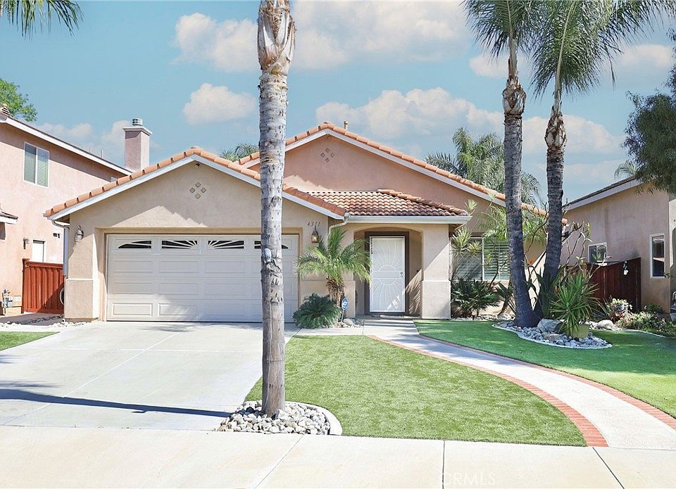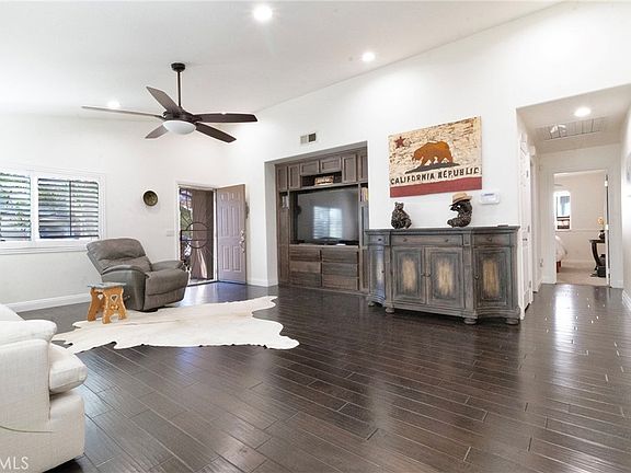 Beautiful, single-story home, conveniently located near Downtown Riverside and Mt. Rubidoux. Entering this home, you are stepping into gorgeous well-maintained floors in the living room, family room, and kitchen. Plantation shutters give the home a sophisticated look. The kitchen has granite counters, the kitchen island has a hibachi grill, plus the kitchen appliances have been upgraded! Sliding door access to the backyard. Come home to the relaxing front and backyard with artificial grass and lovely palm trees. The palm tress with lighting give a cozy vibe for the front and backyard. The backyard has ample space for hosting, with barbecue, refrigerator, heater lamp, jacuzzi, making it a pleasant resting place. Make this home your haven and enjoy what this home offers! Solar is fully paid. The water heater has also been upgraded 2 years ago. The master bathroom has been remodeled, great for unwinding after a long day. The garage has epoxy floor and cabinets perfect for storage.
