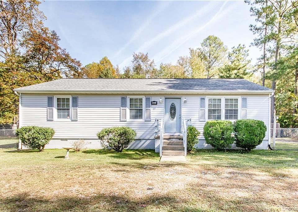 WELCOME home to PG! Adorable 3 bedroom, 2 FULL bath home with a large back yard that is fenced for making some great memories! Spacious living room and nice size kitchen with great storage. Awesome deck out back, great for entertaining right off the kitchen. Enjoy talking a break after a long day with your favorite beverage on the deck that overlooks beautiful mature trees. Bedrooms are nice size and plenty of space for storage. Owners suite has a full bath off the bedroom. There is a shed & large carport that coveys "AS IS" Country living but only about 10 minutes from Fort Lee Army Base and about 5 minutes from shopping. Not far from 95 as well. All appliances, stove, fridge, washer and dryer convey with property "AS IS" with no known defects.