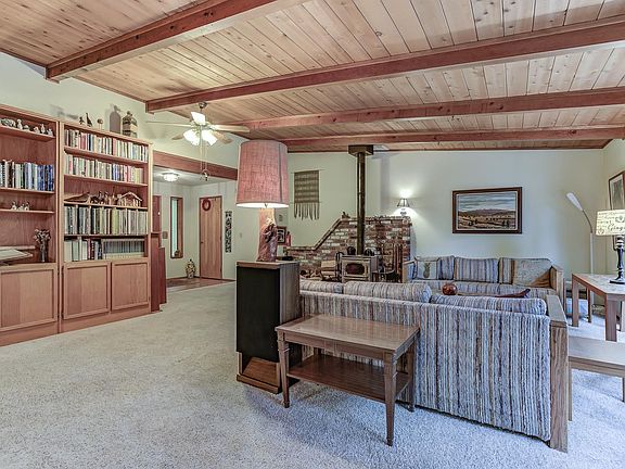 NESTLED IN THE TREES is where you will find this lovely 2180sqft, 4 bedroom, 2 bath home that is ready for you to make it your own. The home is situated on 2.40 country acres. There is a true sense of privacy and mountain living while being close to town. Interior features include a woodstove, wood accented ceilings in the living room, built-in book shelves, 4 separate slider doors opening up to the deck (2 in the living area, 1 in the dining area & 1 in the primary bedroom), a dedicated laundry room, nicely sized bedrooms with large closets, an eat at kitchen bar as well as dining room. From the wrap around back deck you are hugged by your own private forest. Schedule a private showing today before this one is snapped up!