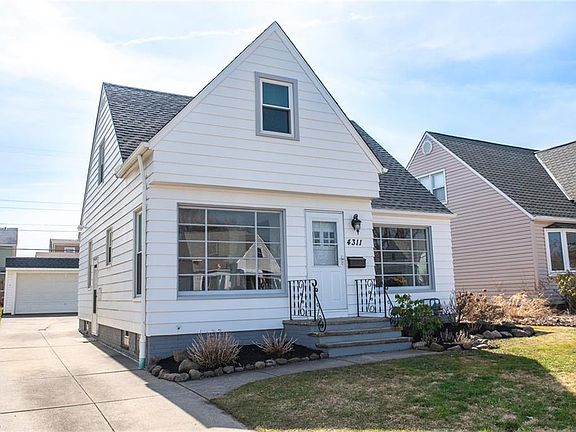 Welcome to this bright and fresh 4 bedroom, 2 full bath cape cod with over 1600 sq ft of finished living space and 2 car garage located close to downtown Cleveland, metro parks, shopping and dining. The front door opens to the entry with access to the spacious and airy living room with a large picture window, newly tiled fireplace & mantel and hardwood flooring. Another large picture window illuminates the renovated eat-in kitchen that boast of ceramic tile flooring, beautiful white shaker cabinets with granite countertops, subway tile backsplash, new light fixtures and stainless appliances. Two nice size bedrooms and a full bath with new vanity, lighting, ceramic tile flooring and tile shower surround complete the main level. Upstairs hosts the master bedroom along with another bedroom, a large walk-in closet and updated full bath with new vanity, ceramic tile flooring, lighting and tile shower surround. The finished basement provides more space for entertaining with recessed lighting and luxury vinyl plank, waterproof flooring. Storage, finished office and laundry area complete the basement. Additional updates include paint throughout, roof ('21), HVAC ('19), hot water tank ('21) and new windows ('21). From top to bottom this home has been made to shine. Truly you can just move right in! Call to schedule your private showing today.