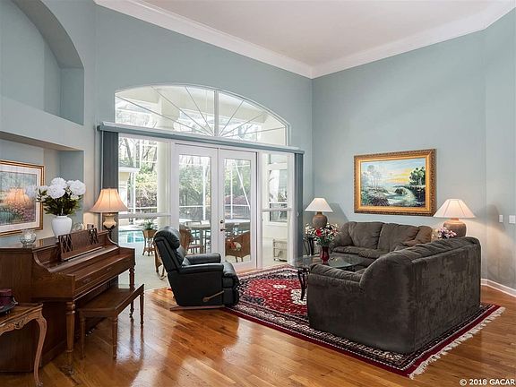 Gorgeous Tommy Waters Former Parade Pool Home 3752 SF H/C and 5301 SF under roof in Award winning Haile Plantation, Whitaker Oaks on .81 acres - your own retreat. 4 bedrooms plus a study and a bonus room that could be 5th bedroom or spacious study or Media room or sectioned off as an in law apartment, 3 full baths and 1/2 guest bath. Bright and Open floor plan voluminous 16 foot ceilings with kitchen open to family room, formal dining room, lounge, all with a view of the sparkling pool with hot tub. French doors lead to the expansive deck area to enjoy the pool and hot tub with a fabulous cabana with full summer kitchen (grill, cook top, and restaurant salamander broiler, and bar for true entertainment, surround sound, fireplace And a Japanese Koi pond! Owners suite has sitting area, luxury bath and HUGE closet. 2 water Heaters, hardwood flrs, 16 ft ceilings, crown. Oversized 3 carG, HVAC 2013 (2), Roof 2012. Zoned for Chiles, Kanapaha, Buchholz, close to UF/Shands/VA, NFRH, Sta. Fe C, I-75, shopping and a Publix in Haile. Miles of trails, restaurants in Village center along with Haile Plantation Golf and Country Club one block over. Premiere neighborhood!