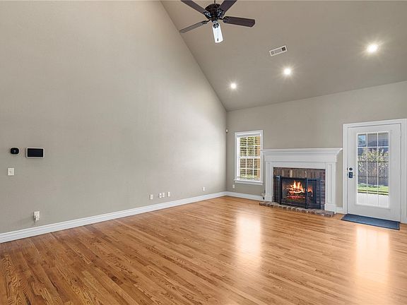 Stunning 5 BR 3 BA home just minutes from I-49 and conveniently located to all Fayetteville has to offer. Situated on a friendly cul-de-sac right by Clabber Creek Trail (paved, multi-use) which leads to the Razorback Greenway. This immaculately kept home was freshly painted with new carpet in 2023. Used as a second home by owners for out-of-town visits, so the paint and carpet still look new. Gorgeous real hardwood floors throughout main downstairs living areas were refinished in 2025. Kitchen features custom cabinetry, granite countertops, stainless appliances, gas cooktop, new vent hood, and double ovens. Laundry room includes extra cabinets, large sink, and fixed clothes rod. Master suite is spacious, and the master bath has a large walk-in closet with custom built-ins and LED lighting. Upstairs offers two bedrooms with a jack-and-jill bath and a grand bonus room or 5th bedroom. Backyard is fully fenced. Enjoy relaxing under the covered porch with extended patio.