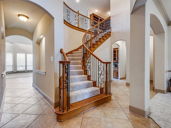 Enter this elegant home featuring curved staircase, formal dining with butlers pantry, an office with french doors, a guest bed and full bath, media room with wine bar and wine cooler down. The large open family room offers a floor to ceiling FP and wall of towering windows. The gourmet kitchen features an oversized chef's gas range, this kitchen is a cook's dream, two ovens, pasta faucet, vegetable sink, warning drawer, built in refrigerator, walk in pantry all overlooking the family room with a large curved breakfast bar. The breakfast area has a desk with cabinets and overlooks the back covered patio. The oversized master suite offers separate vanities with stamped copper bowls, custom cabinet designs, oversized double head shower, jacuzzi tub, two walk-in closets. As you make your way up the elegant staircase, you will find a large open game room adjacent to a flex room exiting to the balcony. A bedroom and full bath complete that area. Split across the game room are 2 additional bedrooms with a jack-jill bath. This home is elegant, fresh and ready for the new owners!