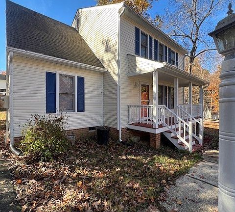 Two story home located in N. Chesterfield. Country porch. Living room, den, large kitchen with dining area, laundry room and half bath on the first floor. Walk out to an oversized partially covered deck. Second floor features primary suite with full bath and wall to wall closets. Three additional bedrooms are also located on the 2nd floor and a another full bath. Freshly painted throughout and new carpet on stairs and in all bedrooms as well as the den.