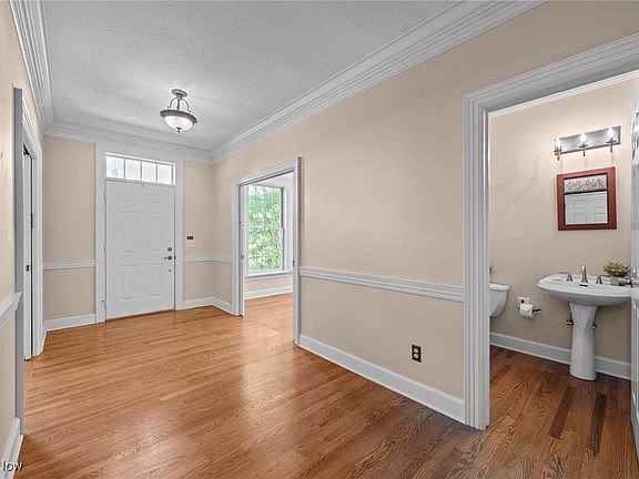 Nestled in the trees of the desirable Cobblestone community, this stunning brick colonial is full of timeless charm and quality craftsmanship. Perfect for the car enthusiast, this home offers an oversized three-car garage with nature stone floors. Inside, you’ll find beautiful wood floors flowing throughout, complemented by neutral paint to match any décor. Plantation shutters adorn every window, adding character and warmth.