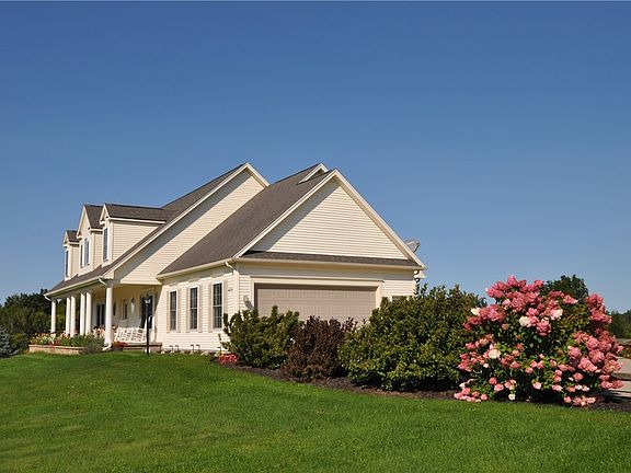Here's the house you've been waiting for! Original owners are reluctantly parting with their well constructed home on a 6 plus acre slice of heaven. Custom built with upgrades galore! Radiant heat flooring in the basement and first floor (under the tile and hardwood flooring only). Engineered i-joists were used in construction to insure quiet and solid floors. A propane fueled Generac hardwired whole house backup generator gives you an insurance policy against any potential grid outages. The Superior Wall precast concrete foundation gives you plenty of head room to finish more living space and a bone dry lower level. 2 egresses out of lower level, walkout to grade to the back of house and a stairs to the garage. Adjacent to the garage is the barn to store your mower with plenty of room left over for additional property maintenance equipment and toys. You'll appreciate the open floor plan when friends and family gather, with the kitchen over looking the great room with a vaulted ceiling and fireplace. The current owners have made sure there are plenty of windows throughout the house to invite natural light and views of the surrounding landscape inside. You can take your informal meals at the island in the kitchen while the formal ones can be enjoyed in the adjacent dining room. The first floor half bath is conveniently located off of the large foyer entrance and the first floor main bedroom with ensuite bath with shower and spa soaking tub gives this house ground floor no steps living ease. Upstairs you'll find the loft office area and two additional bedrooms sharing a second full bath along with a storage area off of one of the bedrooms. The views from this properties outside living spaces are gorgeous! Enjoy the sunrises on your deck in the morning and the evening sunsets on your front porch. You're in the country but not far from the action. Fairport Village and Wegmans and Aldi's are an 11 minute ride away, while the Penfield YMCA is a 7 minute ride. You'll have plenty of time to tour our home, Delayed negotiations until Wednesday September 3 at noon with four open houses: Sat 8/23 and Sat 8/30 from 1-3pm and Sun 8/23 and Sun 8/31 from 1-3pm.