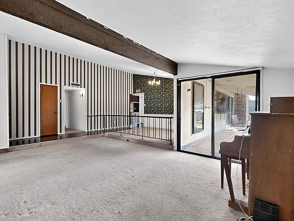 Brick fireplaceLarge fenced yardCozy family roomVersatile areaLarge windowsPractical layoutVaulted ceilings
