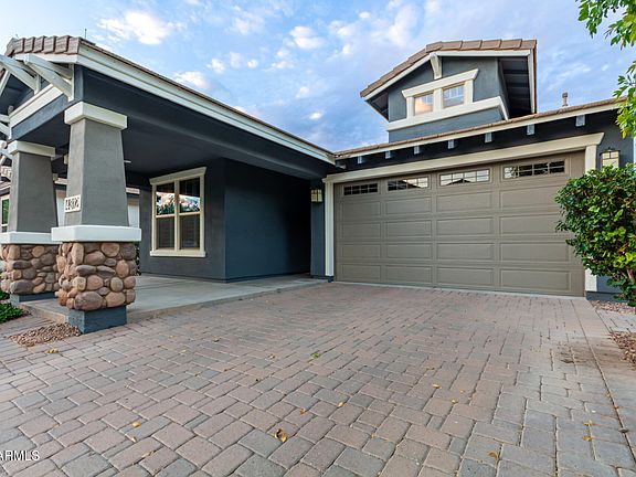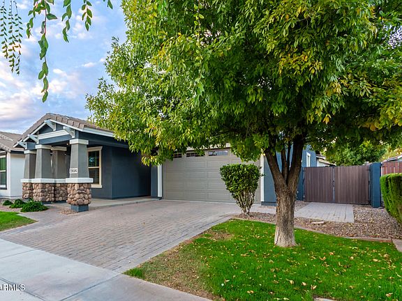 Move-in Ready! This 2 bedrooms + den home with a POOL sits in one of Gilbert's most sought-after communities. Thoughtfully upgraded with wood shutters, coffered ceilings, 8-ft doors, NEW interior/exterior paint, NEW carpet, and designer touches throughout. The GREAT ROOM FLOORPLAN features a chef-style kitchen with a center island/breakfast bar, professional grade appliances including a gas cooktop and a NEW refrigerator, 42'' upper cabinets, Quartz countertops, tile backsplash and a walk-in pantry. Enjoy indoor-outdoor living with a 3-panel slider leading to your private backyard retreat featuring a sparkling 2015-built pool, travertine pavers, and artificial turf. Morrison Ranch offers unmatched neighborhood charm with tree-lined streets, white picket fences, lakes & lush green spaces.